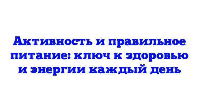 Как активность и питание работают в паре