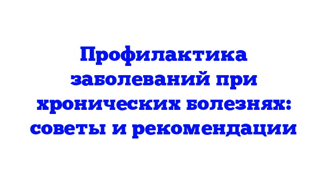 Профилактика заболеваний у людей с хроническими болезнями — это залог долгой и комфортной жизни. Она включает в себя комплекс мер, направленных на поддержание стабильного состояния здоровья, снижение риска осложнений и повышение качества жизни. Правильное питание, физическая активность, регулярное медицинское наблюдение, психологическая поддержка и строгий прием лекарств — вот основные составляющие успешной стратегии профилактики.